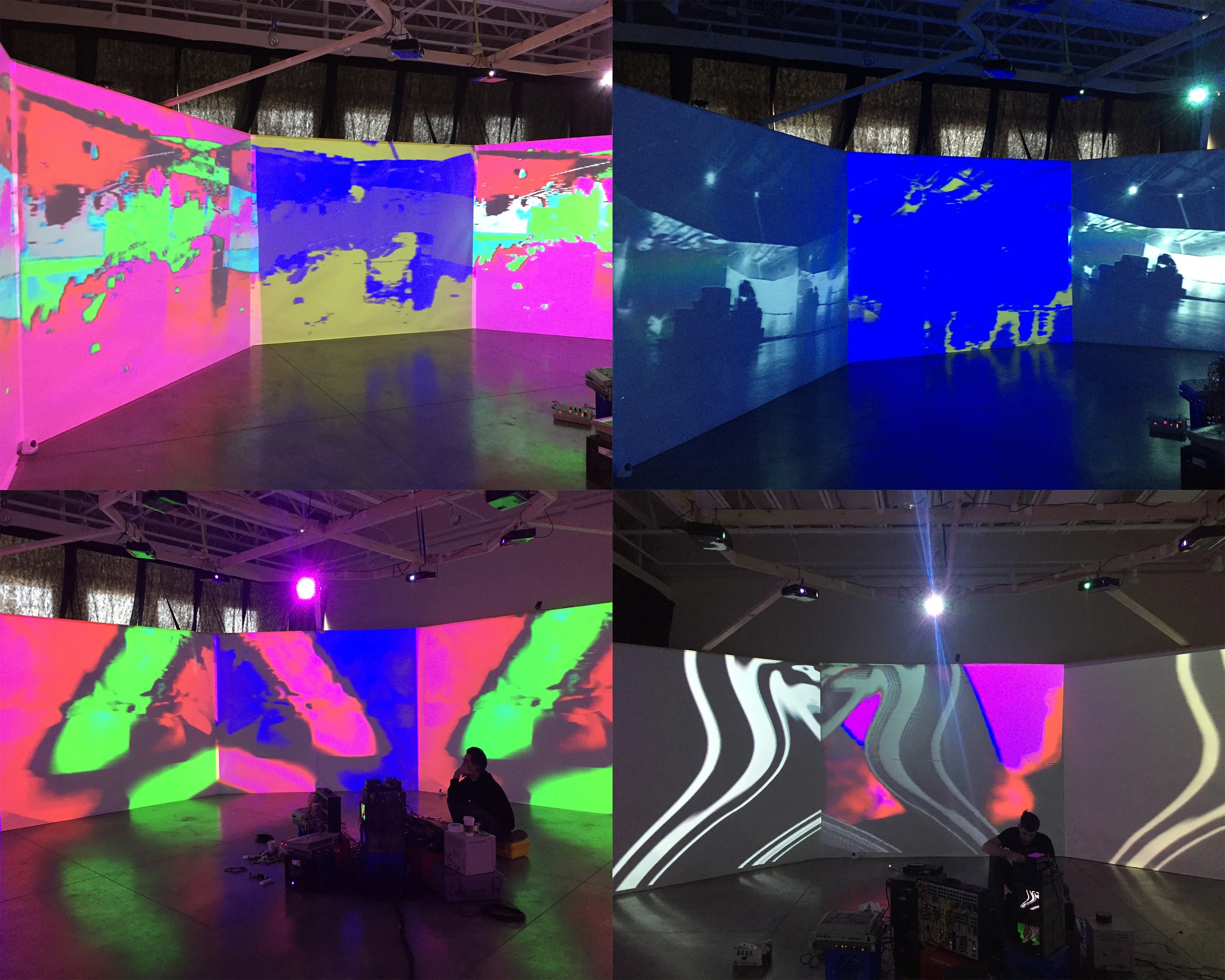 Hearding Cats Collective and The Regional Arts Commission (RAC) presents Octarrarium which represents the latest iteration of large scale video installation systems developed by collaborators Kevin Harris and Chad Eivins. The piece will serve as both a gallery installation and a platform for sound performance. A multi-sensory and environment, Octarrarium, is created by encompassing the viewer within eight large projections of live, interactive video.